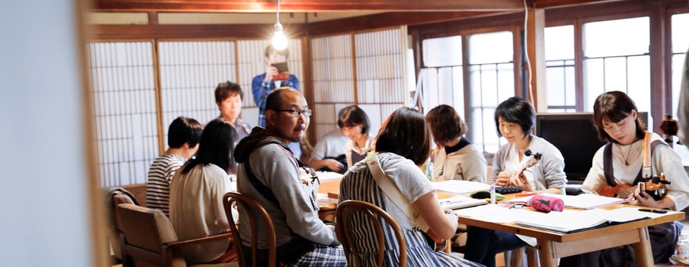 今回はFOLK koshigoeという新たな場所でのウクレレワークショップでしたが、木造の古民家に響くウクレレの音はさらに心地よく、広くて贅沢なスペースでのワークショップとなりました!